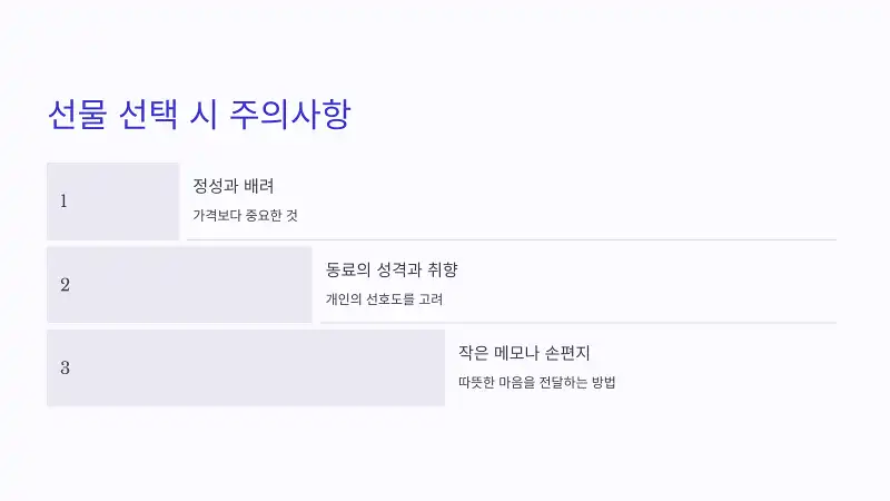 λ™λ£Œμ˜ μ·¨ν–₯κ³Ό λΌμ΄ν”„μŠ€νƒ€μΌμ„ κ³ λ €ν•˜λŠ” 것이 μ€‘μš”ν•΄μš”. λ˜ν•œ, λ„ˆλ¬΄ κ°œμΈμ μ΄κ±°λ‚˜ κ³Όλ„ν•˜κ²Œ κ³ κΈ‰μŠ€λŸ¬μš΄ 선물은 ν”Όν•˜λŠ” 것이 μ’‹μ•„μš”.